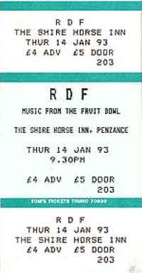 | At Dartington College of Arts, I joined, some weeks after it's formation, "Music from the Fruitbowl", an exciting musical experiment including Chris Dangerfield on vocals, Jim Davison on bass guitar, Matt Jones on lead guitar, Tim Morgan on clarinet, Luke Spencer on drums, and Paul Mumford on second lead guitar. The seven-piece played an eclectic mix vaguely dubbed 'psychedelic funk', all tracks co-composed by the band. We were very successful on the local gig-circuit, and toured the South West with RDF, the dub band, as their support. We cut a demo tape of three tracks at Redrug Studios, Exeter Arts Centre, produced by Dean Frederick, and, like so many college bands, foundered in the final year. I bought and played a Roland D5, programming sounds on it that made it almost unrecognisable as a Roland D5. After Music from the Fruitbowl, I again let my keyboard playing lapse. I did, however, acquire a Hammond Organ in early 2001 - during the Maha Kumba Mela - and shortly thereafter a baby grand piano arrived in the house I was renting. I soon remembered the songs I used to play in the early 90s, and gladly started playing them again. On moving to a new house, there was nothing for it but to buy a small upright, a John Broadwood, which is now the pride of my living room. I hope to learn a few blues-jazz standards when I get the chance... | |||