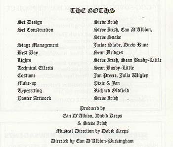 In Autmn 1988, with Ean D'Albion as Director, I became a founder member of Gothic Relief Theatre Company, resident at the Assembly Rooms, Glastonbury.