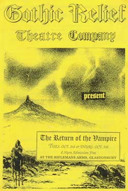 - "The Return of the Vampire," written by myself and Ean D'Albion, was performed in a marquee in the car park of the Rifleman's Arms, Glastonbury, October 1989, directed by Ean D'Albion.