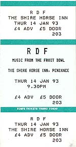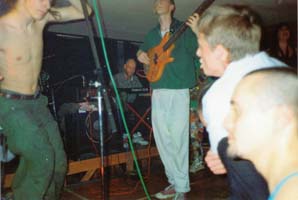 | At Dartington College of Arts, I joined, some weeks after it's formation, "Music from the Fruitbowl", an exciting musical experiment including Chris Dangerfield on vocals, Jim Davison on bass guitar, Matt Jones on lead guitar, Tim Morgan on clarinet, Luke Spencer on drums, and Paul Mumford on second lead guitar. The seven-piece played an eclectic mix vaguely dubbed 'psychedelic funk', all tracks co-composed by the band. We were very successful on the local gig-circuit, and toured the South West with RDF, the dub band, as their support. We cut a demo tape of three tracks at Redrug Studios, Exeter Arts Centre, produced by Dean Frederick, and, like so many college bands, foundered in the final year. I bought and played a Roland D5, programming sounds on it that made it almost unrecognisable as a Roland D5. After Music from the Fruitbowl, I again let my keyboard playing lapse. I did, however, acquire a Hammond Organ in early 2001 - during the Maha Kumba Mela - and shortly thereafter a baby grand piano arrived in the house I was renting. I soon remembered the songs I used to play in the early 90s, and gladly started playing them again. On moving to a new house, there was nothing for it but to buy a small upright, a John Broadwood, which is now the pride of my living room. I hope to learn a few blues-jazz standards when I get the chance... | |||