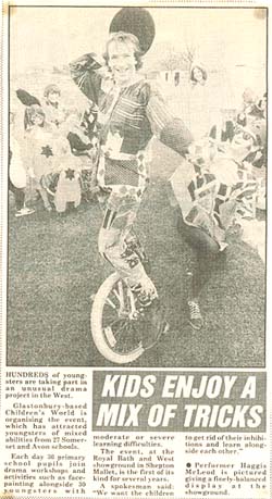 In the Summer term of 1988 I worked for Arabella Churchill's Children's World Charity in Somerset, as a Drama Team member, touring special needs schools all over Somerset, taking a new participatory story round the circuit each week.