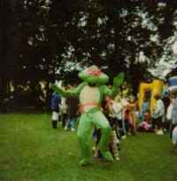 I am pictured to the right, with Haggis McLeod on the unicycle,in the newspaper clipping for The Colour Tribes. And yes, the guy inside the Turtle at the 1991 Children's Festival is me. *blush* |
