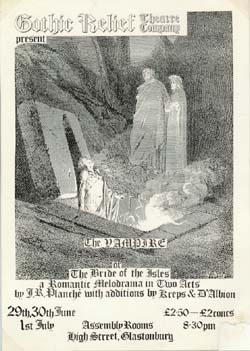 - In June 1989, I played the Vampire in J.R. Planche's 1825 script, "The Vampire", directed by Ean D'Albion. This was an enormous success, attracting full houses for the whole run, and sufficient local acclaim for a sequel: